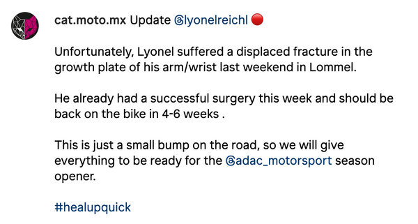 Ce n'est qu'un petit obstacle sur sa route, nous allons tout donner pour être prêts pour le début de la saison de @adac_motorsport.
