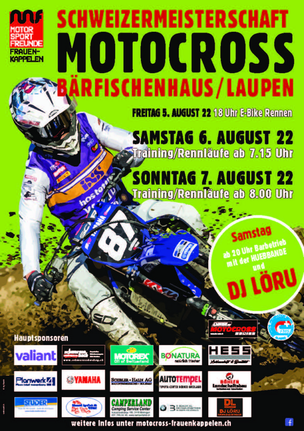 Samedi, toutes les catégories AFM sont au départ à Bärfischenhaus et se battent pour d'importants points au championnat. Les 10 premiers pilotes du classement journalier des catégories MX 250, MX3 Sénior, MX 125 et MX Open sont autorisés à prendre le départ de la superfinale du samedi soir. La journée se poursuivra sur le toit avec un enduro d'une heure suivi d'un bar avec DJ. Le dimanche, les catégories Yamaha YZ Cup, MX Women Cup, FMS Lites et les Kids de la Scott Kids Cup 65 seront en lice.